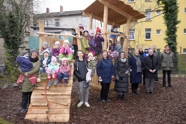Flohkisten-Kids freuen sich über neues Klettergerüst